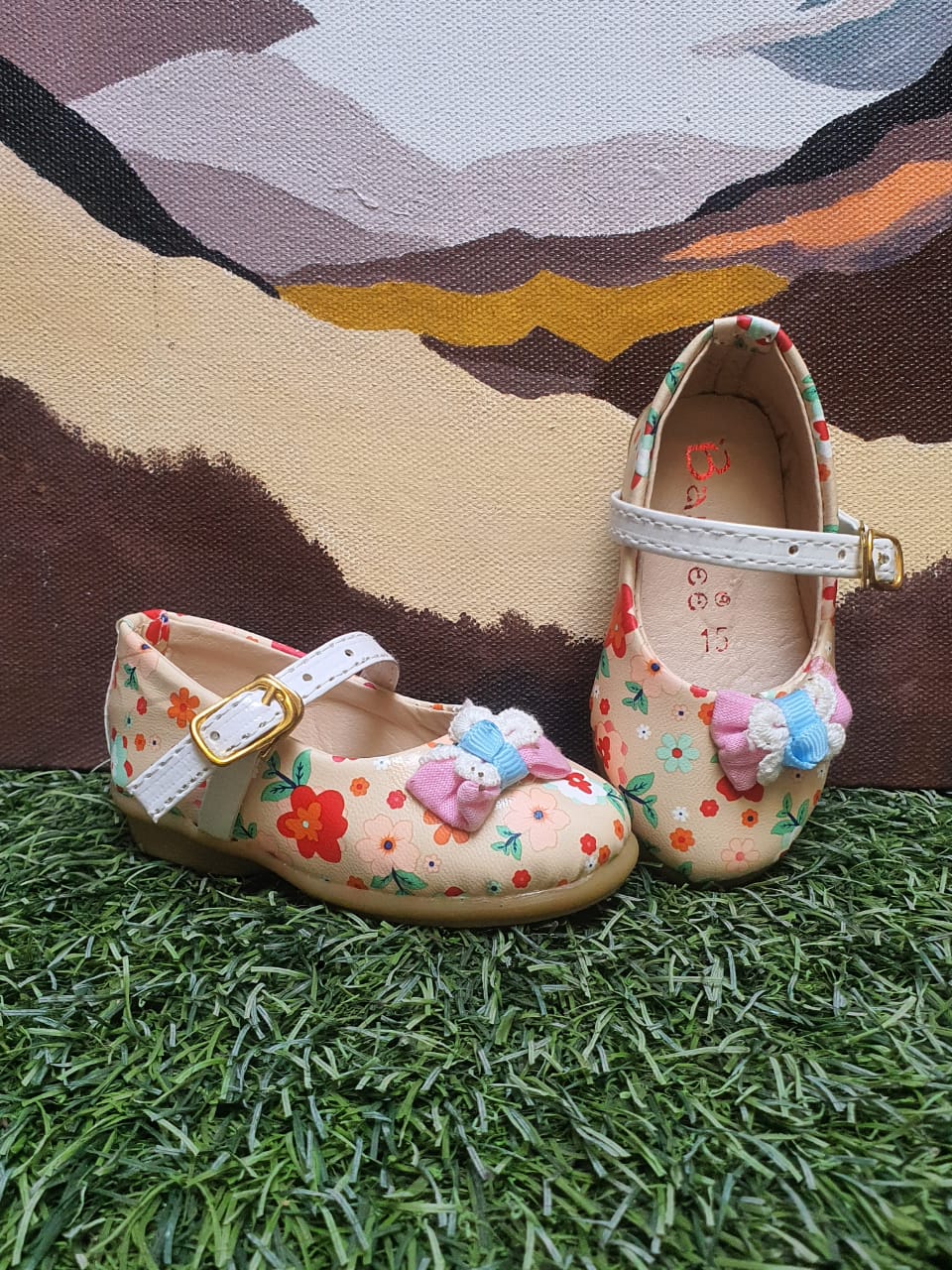 Cute Walk by Babyhug Ballerina With Velcro Closure Butterfly Print & Bow Applique – White
